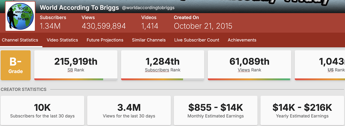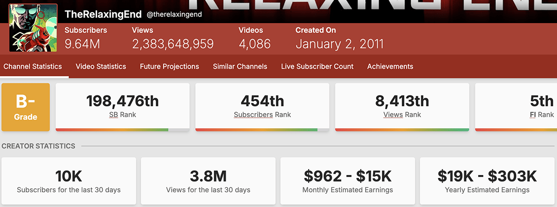 And get this, TheRelaxingEnd accumulated 4 million views in just the last 30 days. Take a wild guess at how much that adds up to monthly.